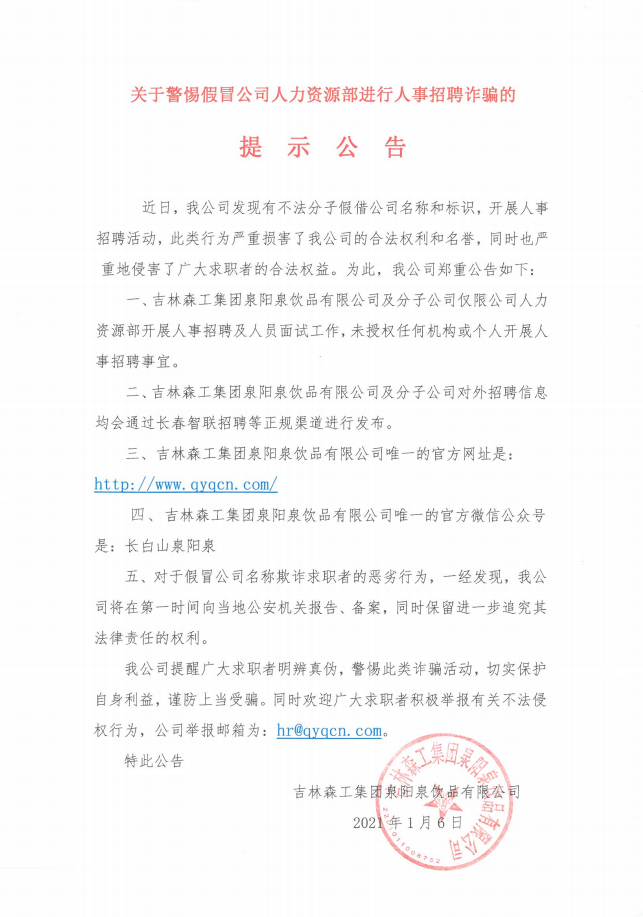 吉林森工集團泉陽泉飲品有限公司